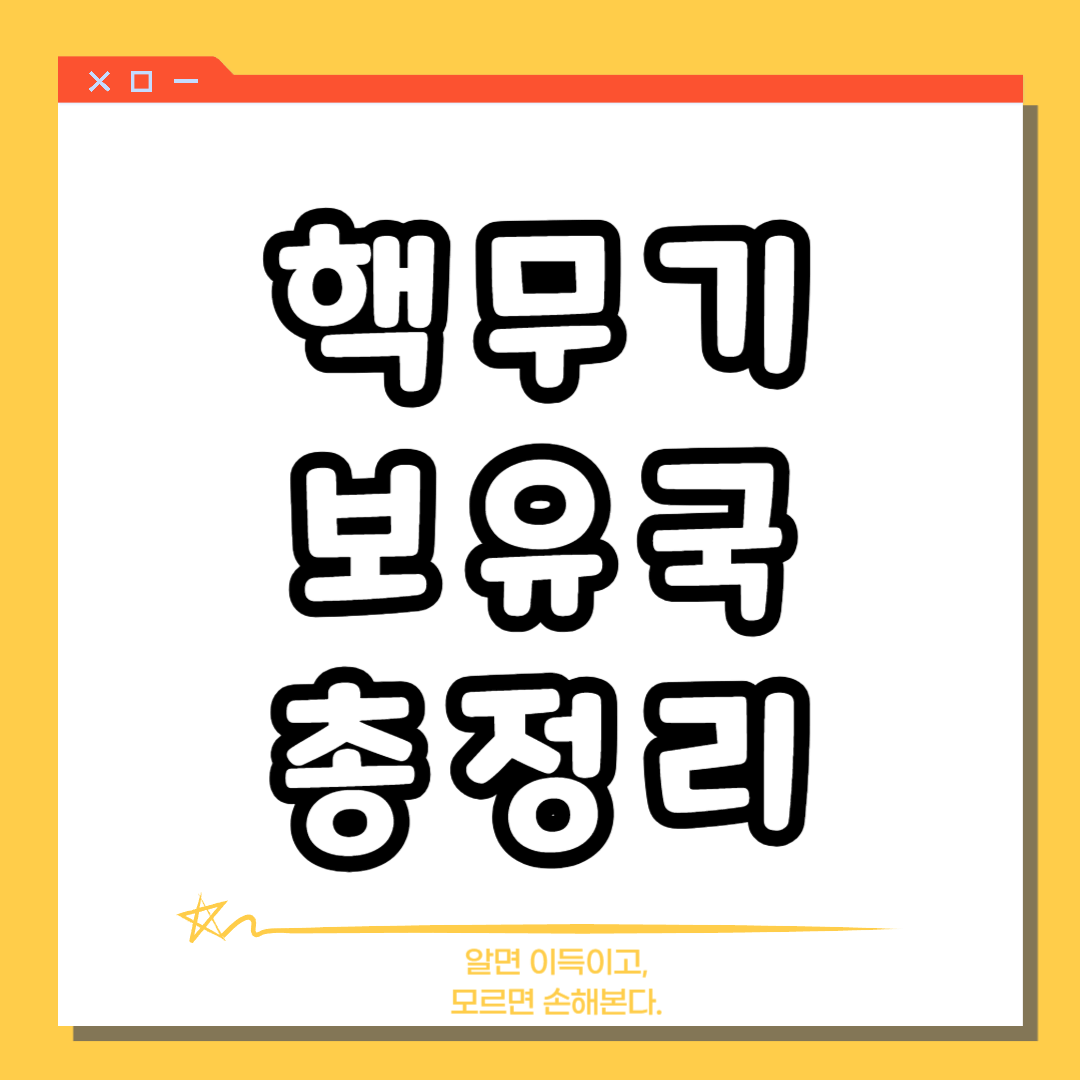 핵무기 보유국은 크게 NPT(핵확산금지조약)에 의해 공식적으로 인정받은 국가와 비공식적으로 핵무기를 보유한 것으로 알려진 국가들로 나뉩니다. 공식적인 핵무기 보유국으로는 미국, 러시아, 중국, 영국, 프랑스가 있으며, 이들은 NPT의 핵무기 보유국으로 인정받고 있습니다. 비공식적인 핵무기 보유국으로는 인도, 파키스탄, 이스라엘, 북한 등이 있으며, 이들 국가는 NPT에 서명하지 않았거나 후에 탈퇴한 경우도 있습니다.